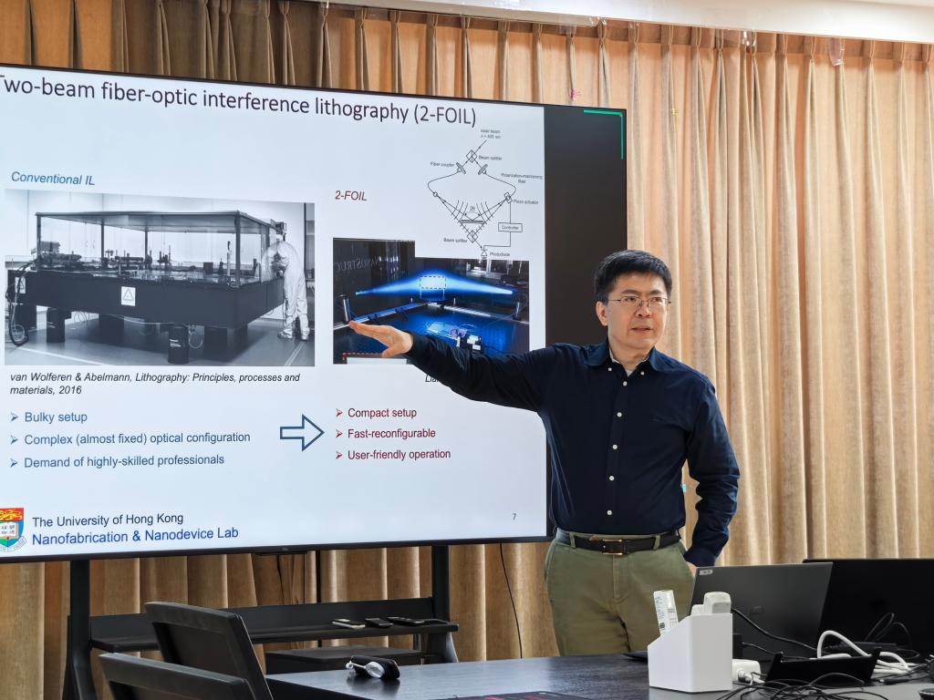 2026年1月9日,香港大学机械工程系李文迪副教授应邀来访我课题组。李文迪副教授现任香港大学机械工程系长聘副教授及副系主任,李副教授分别在清华大学和普林斯顿大学获得学士和博士学位,并在惠普实验室进行先进光刻技术方面的博士后研究。李副教授的研究方向聚焦在高分辨率、可扩展的光刻图案化有以及微纳制造技术,长期从事纳米制造与纳米器件研究,在激光干涉光刻、模板电化学沉积等领域取得重要突破。李副教授团队的发明三次获得日内瓦国际发明展金奖,并授权于初创企业用于柔性电子器件及纳米光刻设备的商业化开发。